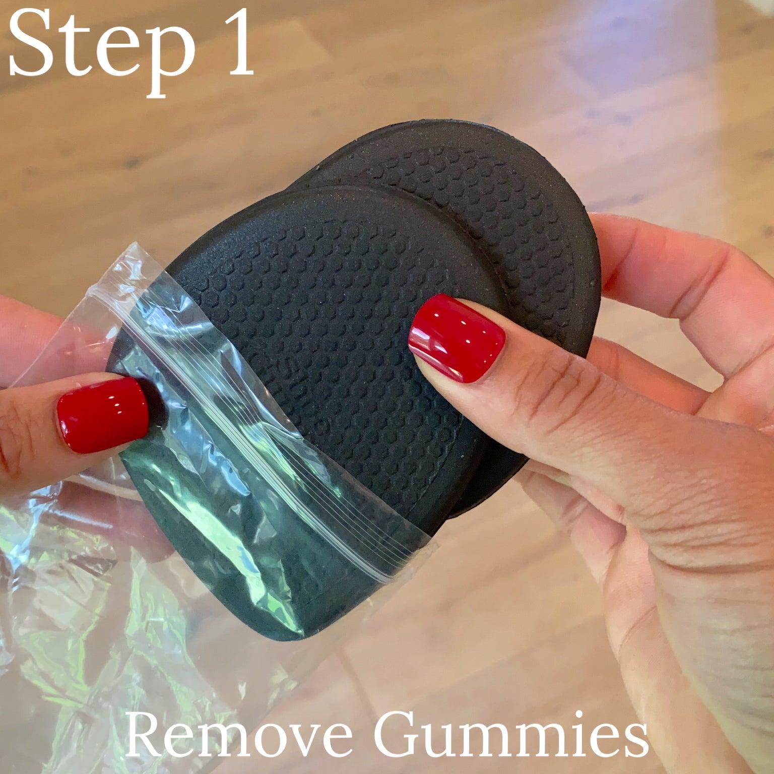 Place gummi on the bottom of shoe ... View Fig 1 & 2 for proper gummi placement